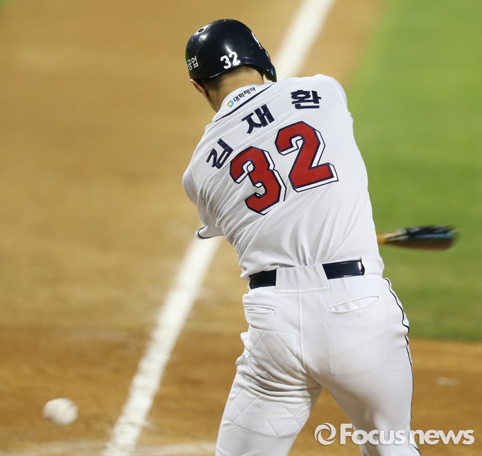 | △ 헛스윙하는 두산 김재환 |
