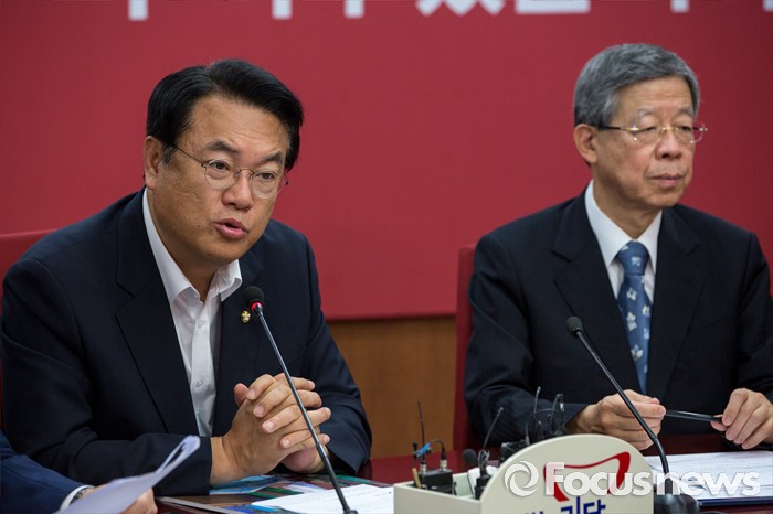 (서울=포커스뉴스) 정진석 새누리당 원내대표가 21일 오전 서울 여의도 새누리당사에서 열린 혁신비상대책위원회의에 참석해 모두발언 하고 있다.