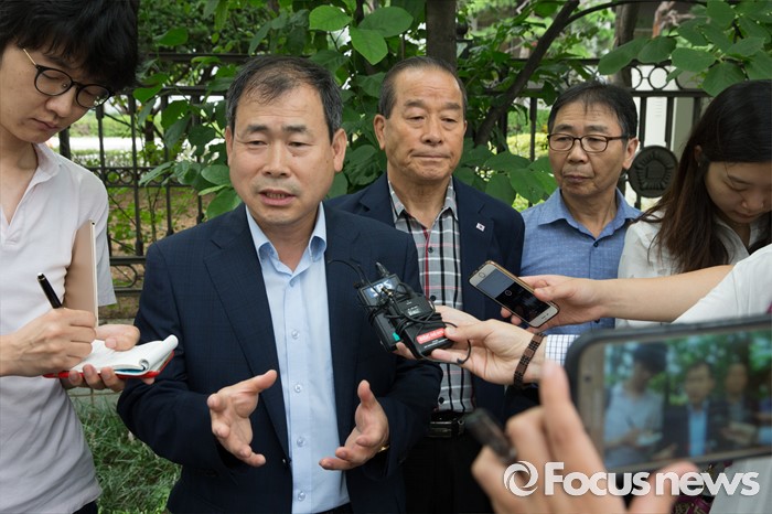 (서울=포커스뉴스) 최봉태 변호사가 21일 오전 서울 양천구 서울남부지방법원에서 열린 국가를 상대로 한 손해배상 청구 소송 선거공판이 끝난 뒤 취재진 질문에 답하고 있다. 서울남부지법 민사합의15부(부장판사 이광영)는 한국원폭피해자협회 서울지부 회원 230명이 국가를 상대로 낸 손해배상 청구 소송에서 원고 패소로 판결했다.