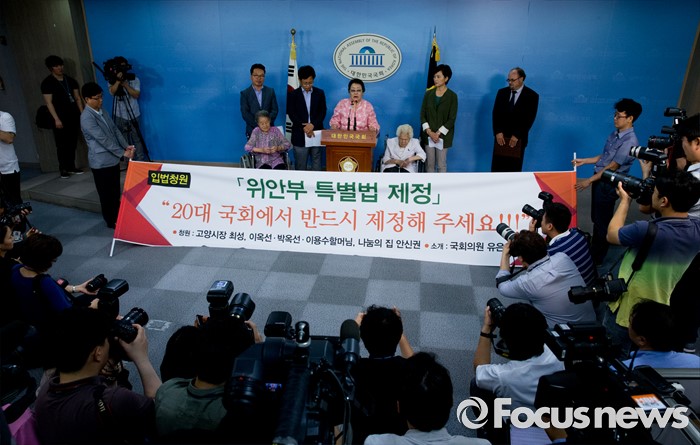(서울=포커스뉴스) 21일 오전 서울 여의도 국회 정론관에서 열린 위안부 특별법 입법 청원 기자회견에 참석한 이용수 할머니가 정부를 비판하고 있다.