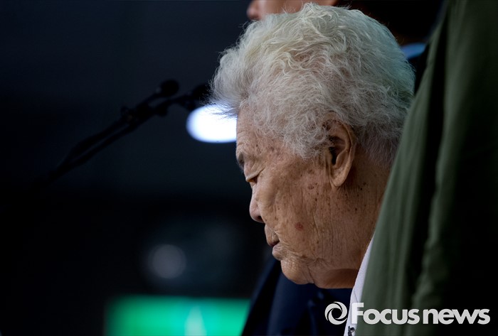 | △ 기자회견에 자리한 이옥선 할머니 |