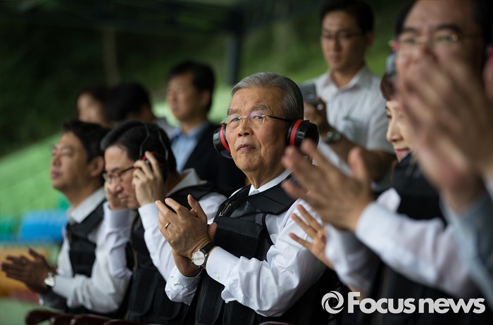 | △ 경찰 특공대 방문, 박수치는 김종인 |