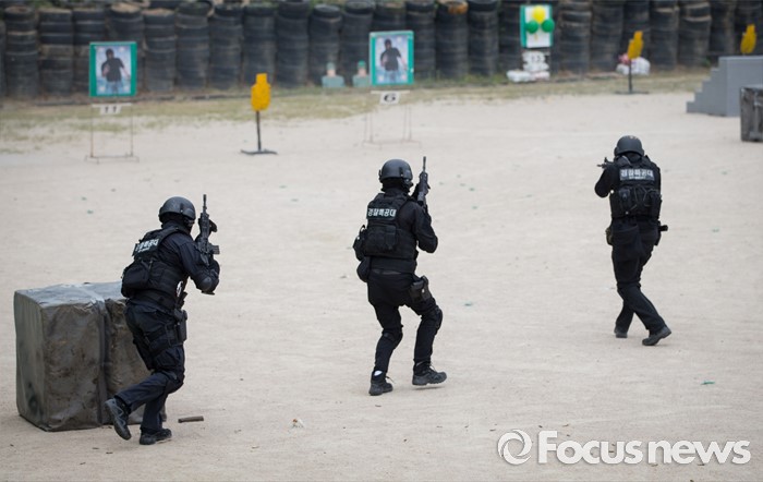 테러범을 향해 사격하는 경찰특공대