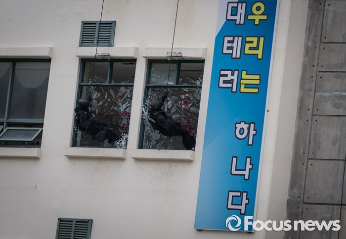 경찰특공대, 고층 창문 박살내고 테러범 진압