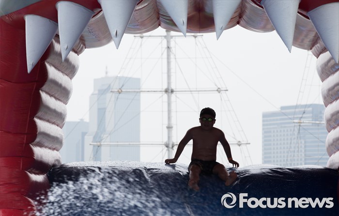 (서울=포커스뉴스) 21일 오후 서울 광진구 뚝섬 한강공원 수영장을 찾은 한 어린이가 물놀이를 줄기고 있다.