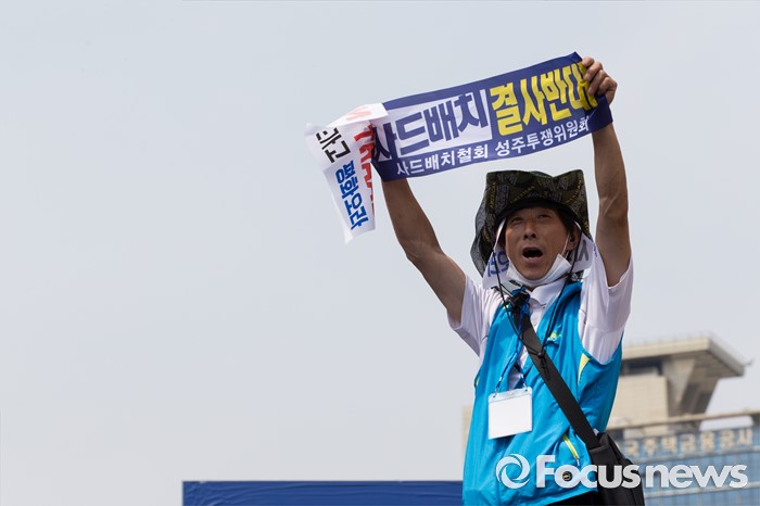 (서울=포커스뉴스) 21일 오후 서울역 광장에서 사드 배치 반대를 요구하는 경북 성주군민 2천여 명이 대규모 상경집회를 하고 있다.