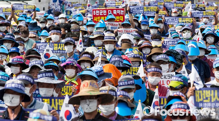 (서울=포커스뉴스) 21일 오후 서울역 광장에서 사드 배치 반대를 요구하는 경북 성주군민 2천여 명이 대규모 상경집회에 참가해 침묵시위를 하고 있다.