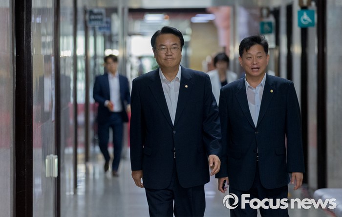 | △ 면담 위해 이동하는 정진석-김명연 |