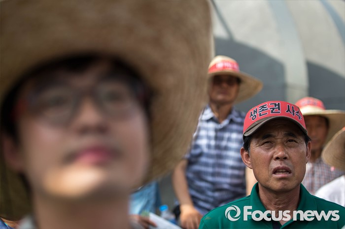 (서울=포커스뉴스) 21일 오후 서울 여의도 산업은행 본점 앞에서 농축산물의 김영란법 적용 제외를 요구하는 전국 농축산인 총궐기대회가 열리고 있다.