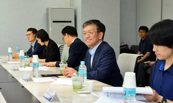 (서울=포커스뉴스) 최상목 기획재정부 차관이 21일 서울시 중구 아모레퍼시픽(유연근무제 및 일·가정 양립 모범기업) 본사를 방문해 일·가정 양립문화 확산방안 간담회를 주재하고 있다. <사진제공=기획재정부>