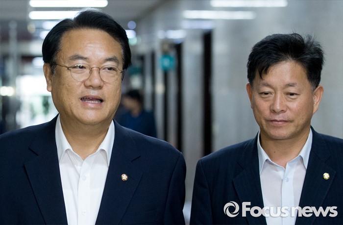 | △ 원내대표실 향하는 정진석-김명연 |