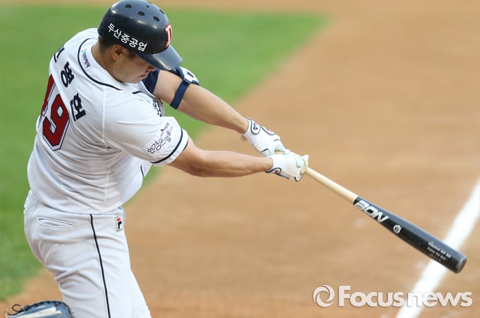 (서울=포커스뉴스) 21일 서울 잠실구장에서 열린 2016 프로야구 삼성-두산 경기 1회말 무사 1,2루에서 두산 민병헌이 우익수를 넘기는 주자일소 2루타를 날리고 있다.