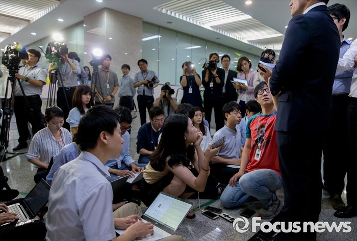 | △ 정병국에 쏠린 취재진 |