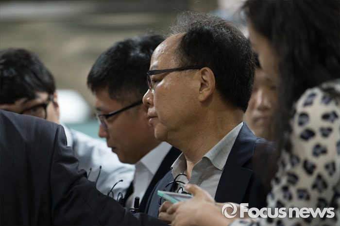 (서울=포커스뉴스) 롯데케미칼의 270억원대 조세포탈 혐의를 받고 있는 기준 전 롯데물산 사장이 영장실질심사를 받기 위해 10일 오전 서울중앙지법으로 들어서고 있다.