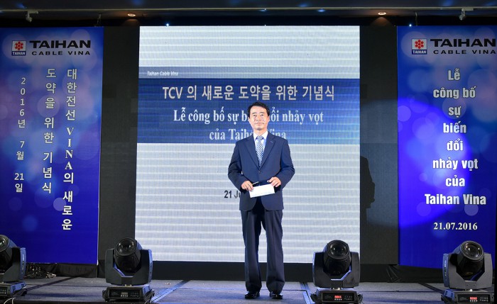 대한전선 관계자는 "베트남 TCV 지분의 성공적인 인수와 동시에 사우디 전력기기 공장 신설에 대해서도 합작투자 업무협약(MOU)을 체결 하는 등 글로벌 거점 확보에 가시적인 성과가 이어지고 있다"며 "당진공장, TCV(베트남), M-TEC(남아프리카공화국), 사우디 전력기기 공장으로 이어지는 사각 구도를 통해 글로벌 경쟁력을 강화해 나갈 것"이라고 밝혔다.대한전선 최진용 사장이 TCV 기념식에서 연설을 하고 있다.<사진제공=대한전선>