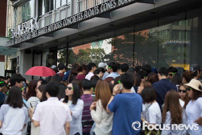 (서울=포커스뉴스) 22일 오전 서울 강남구 쉐이크쉑 국내 1호점 매장 앞에 시민들이 오픈을 앞두고 줄을 서고 있다.