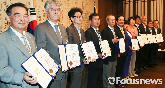 (서울=포커스뉴스) 22일 오전 서울 여의도 국회 의장접견실에서 열린 국회 공직자윤리위원회 위촉식에 참석한 정세균 국회의장이 윤성식 위원장 등 위원들과 기념촬영을 하고 있다. 왼쪽부터 최영식, 장성관, 김서기, 우양태 위원, 윤성식 위원장, 정 의장, 조배숙 부위원장, 김승희, 박완주, 유민봉, 전병준 위원, 우윤근 국회 사무총장.