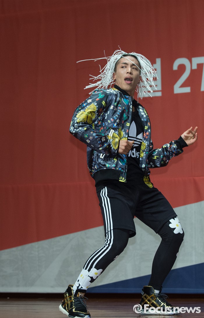(서울=포커스뉴스) 22일 오후 서울 영등포구 63스퀘어에서 열린 Mnet '힛 더 스테이지' 제작발표회에 참석한댄서 제이블랙이 무대를 선보이고 있다.