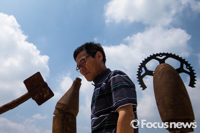 (서울=포커스뉴스) 22일 오후 서울 중구 서울광장에서 '전쟁 없는 세상을 위한 에이이브이(Art's Eye View) 프로젝트 전시가 열리고 있다. 미공군의 사격장으로 쓰였던 경기도 매향리에서 반출된 포탄 및 탄피를 활용, 1000여점의 예술작품으로 만든 이번 전시는 오는 24일까지 열릴 예정이다.