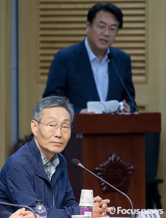 (서울=포커스뉴스) 22일 오후 서울 여의도 국회 의원회관에서 열린 '격차해소를 위한 해법, 왜 중향평준화인가?' 세미나에 참석한 주대환 사회민주주의연대 공동대표(전 민주노동당 정책위의장)이 정진석 새누리당 원내대표의 인사말을 듣고 있다.