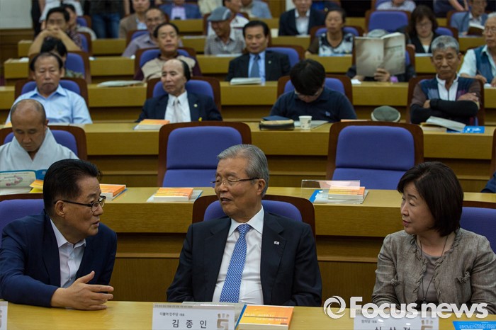 (서울=포커스뉴스) 야3당 대표가 22일 오후 서울 여의도 국회의원회관에서 열린 '5.18 왜곡 방지와 관련 법안 개정(처별규정) 위한 국민 토론회'에 참석해 대화 하고 있다. 왼쪽부터 박지원 국민의당 비상대책위원장, 김종인 더불어민주당 비상대책위 대표, 심상정 정의당 상임대표.