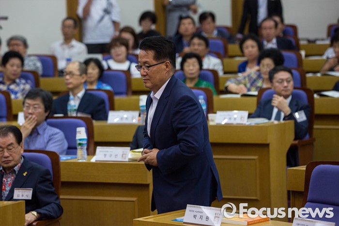 (서울=포커스뉴스) 박지원 국민의당 비상대책위원자이 22일 오후 서울 여의도 국회의원회관에서 열린 '5.18 왜곡 방지와 관련 법안 개정(처별규정) 위한 국민 토론회'에 참석해 인사말하기 위해 연단으로 향하고 있다.