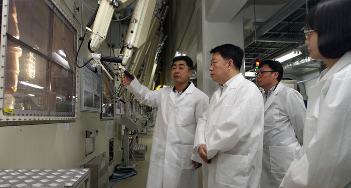 (대전-포커스뉴스) 김용환 원자력안전위원회 위원장이 22일 대전 유성구 한국원자력연구원을 방문, PRIDE 연구동 현장시찰을 하고 있다. <사진제공=원자력안전위원회>