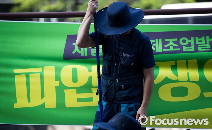 (서울=포커스뉴스) 정부의 일방적인 조선업 구조조정 중단과 현대차 그룹의 성실한 그룹사 공동교섭 참여, 정부의 노동개악 철회등을 내걸며 파업에 들어간 전국금속노조가 22일 오후 서울 서초구 현대자동차 본사 앞에서 금속노조 총파업 대회를 열고 있다.