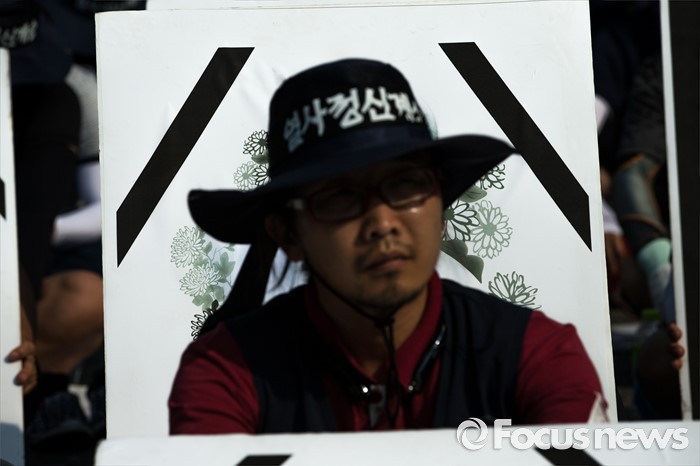 (서울=포커스뉴스) 정부의 일방적인 조선업 구조조정 중단과 현대차 그룹의 성실한 그룹사 공동교섭 참여, 정부의 노동개악 철회등을 내걸며 파업에 들어간 전국금속노조가 22일 오후 서울 서초구 현대자동차 본사 앞에서 금속노조 총파업 대회를 열고 있다.