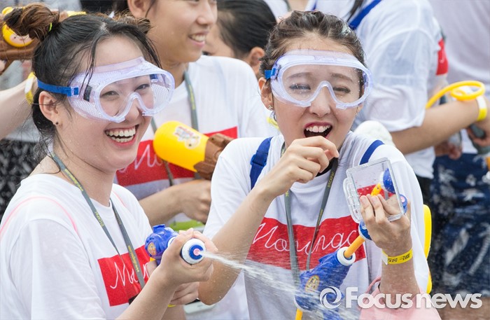 (서울=포커스뉴스) 23일 오후 서울 여의도 한강공원에서 열린 한강 물싸움 축제에서 참가자들이 시원한 물총싸움을 하며 더위를 식히고 있다.