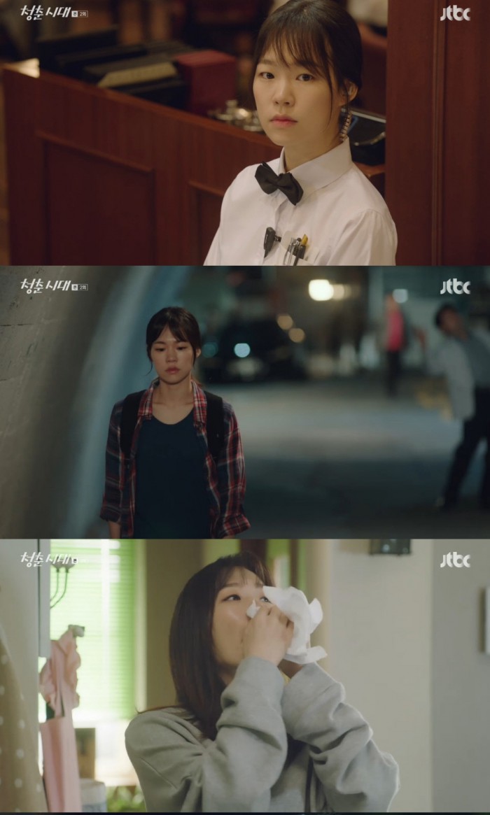 23일 방송된 ‘청춘시대’에서는 '생계형 철의 여인'이라는 캐릭터 수식어답게 학업과 아르바이트를 병행하며 매 순간 삶에 쫓기듯 버겁게 하루를 살아가는 진명의 현실적이고 아픈 청춘이 그려지며 보는 이들의 안타까움을 자아냈다.