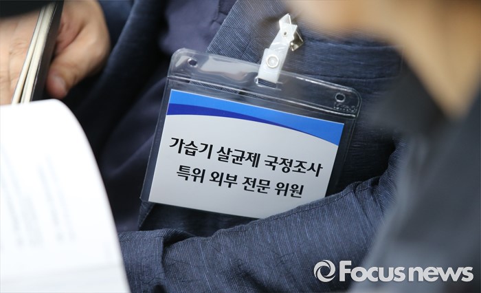 (세종=포커스뉴스) 25일 오전 세종시 정부세종청사 국회회의실에서 열린 환경부·고용노동부·국립환경과학원·안전보건공단에 대한 국회 가습기살균제 특조위 현장조사에서 외부 전문위원이 현장조사에 참여해 질의를 하고 있다.