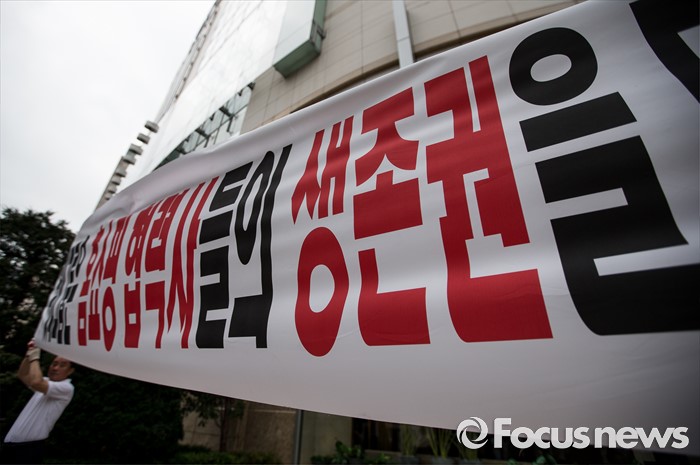 (서울=포커스뉴스) 25일 오전 서울 중구 롯데백화점 앞에서 롯데홈쇼핑 협력사 비상대책위원회원들이 생존권 보장을 촉구하며 집회를 열고 있다.