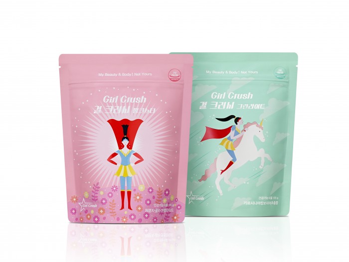 ‘걸 크러시’ 2종 정품을 비롯해 ‘크러시 언니’ 캐릭터를 활용한 스티커와 마그넷, 보틀, 이너뷰티 관리 포스터 등이 포함된 패키지를 선보인다.