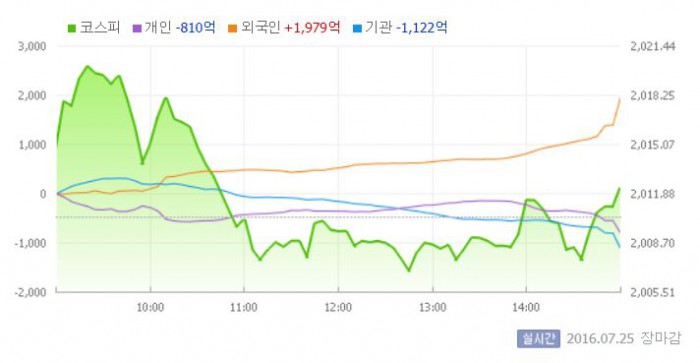 한편 이날 일본 닛케이225지수는 전거래일 대비 0.04% 하락한 1만6620.29로 마감했다.25일 유가증권시장 <그래픽출처=네이버>