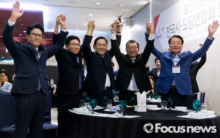 (서울=포커스뉴스) 새누리당 당대표·최고위원 자리를 노리는 당권주자들이 8·9 전당대회를 보름 앞둔 25일 중앙위원회 전국시도당연합회 월례회로 모여들어 차기 지도부에 대한 포부를 밝혔다.