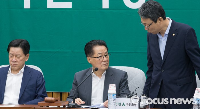 (서울=포커스뉴스) 26일 오전 서울 여의도 국회에서 열린 국민의당 의원총회에 참석한 박지원(가운데) 비상대책위원장과 김성식(오른쪽) 정책위의장이 대화하고 있다. 왼쪽은 주승용 비대위원.