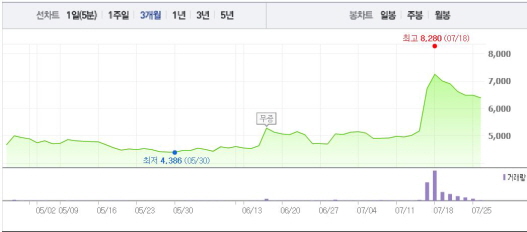 다날은 포켓몬 GO의 온라인 결제사 지분 보유 소식에 주목을 받았다. 포켓몬 GO는 미국, 캐나다, 호주 등에서 시범 출시된 상태며 현재 앱 매출 순위에서 최상위권에 올라갔다. 한국에서도 포켓몬 GO 열풍이 불고 있다.주가흐름<사진출처=네이버 캡쳐>