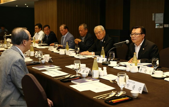 | △ 역대장관들의 의견을 청취하는이동필 장관 |