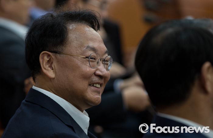 (서울=포커스뉴스) 26일 오전 정부서울청사에서 열린 국무회의에 참석한 유일호 경제부총리 겸 기획재정부 장관미 미소 짓고 있다.