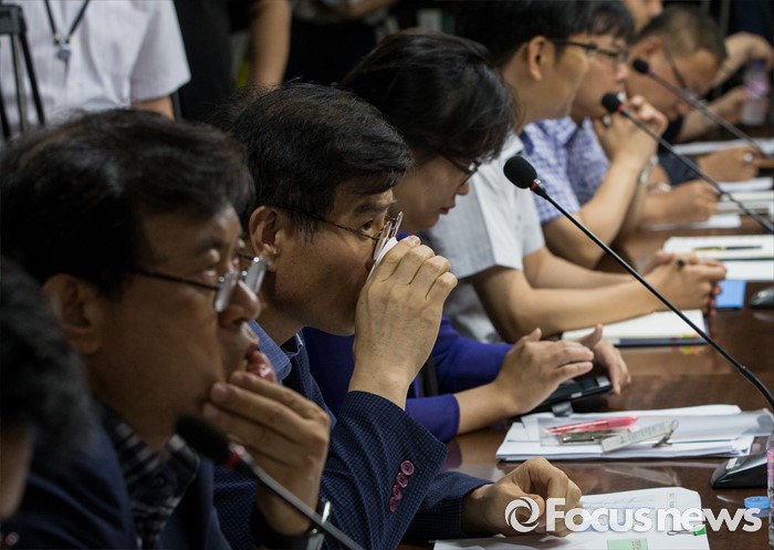 (서울=포커스뉴스) 26일 오전 정부서울청사에서 열린 가스 및 악취 발생 관계기관 안전점검회의에 참석한 정부 및 학계 관계자들이 굳은 표정을 짓고 있다.