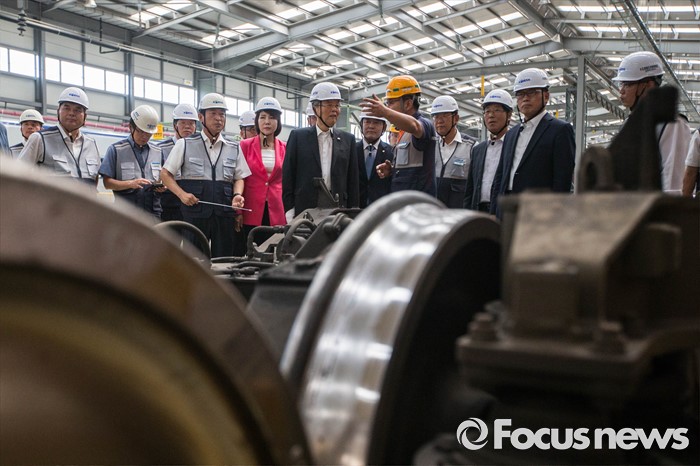 (고양=포커스뉴스) 김종인 더불어민주당 비대위 대표가 26일 오전 경기도 고양시에 위치한 수도권철도차량정비단을 방문, 관계자에게 설명을 듣고 있다.