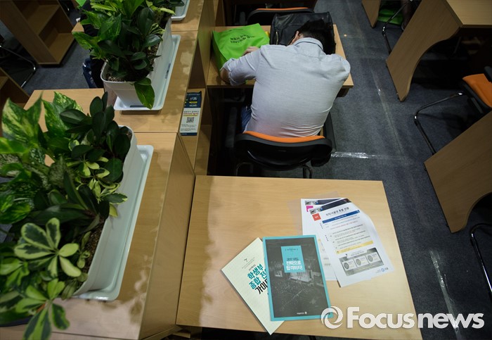 (서울=포커스뉴스) 26일 오후 서울 삼성동 코엑스에서 제1회 메가스터디 대입합격 박람회가 열리고 있다. 박람회를 관람하던 한 학생이 책상 업드려 휴식을 취하고 있다.