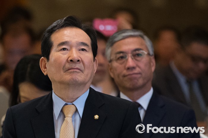| △ 대회사 듣는 정세균-추궈홍 |