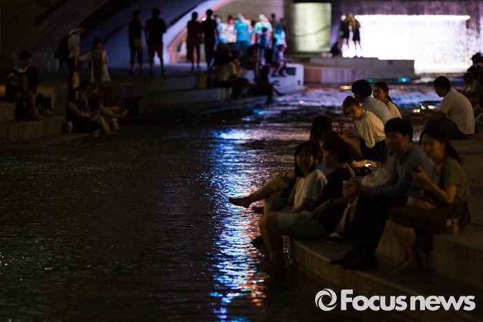 (서울=포커스뉴스) 서울과 전국 대분분 지역이 열대야인 26일 오후 서울 종로구 청계천을 찾은 시민들이 더위를 식히고 있다.
