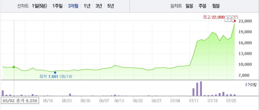 거래소는 무상증자에 따른 권리락이 발생한다고 26일 발표했다. 기준가는 1만7350원이다.주가흐름<사진출처=네이버 캡쳐>