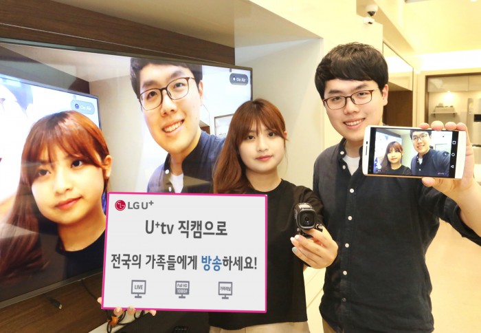 U+tv직캠은 통신사 상관없이 생방송뿐만 아니라 스마트폰에 저장된 사진과 영상도 전송할 수 있는 서비스다. U+tv고객이라면 누구나 999번 채널을 통해 시청할 수 있다. (단 4K UHD 및 우퍼 사용 고객)