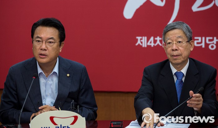 (서울=포커스뉴스) 정진석 새누리당 원내대표가 27일 오전 서울 여의도 새누리당사에서 열린 혁신비상대책위원회의에 참석해 모두발언 하고 있다.