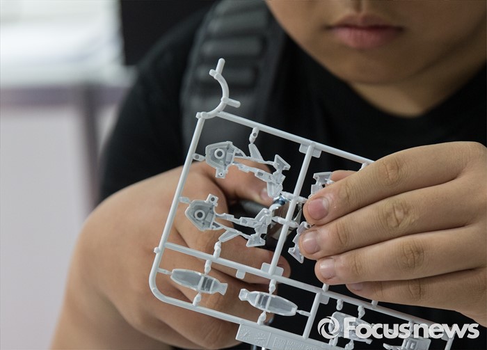(서울=포커스뉴스) 27일 오전 서울 강남구 코엑스에서 열린 '건프라 엑스포 2016'을 찾은 한 관람객이 조립 체험을 하고 있다.