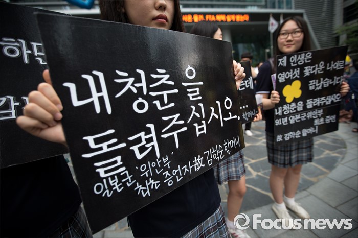 (서울=포커스뉴스) 27일 오후 서울 종로구 옛 일본대사관 앞에서 제1241차 일본군 위안부 문제해결을 위한 정기 수요집회가 열리고 있다.